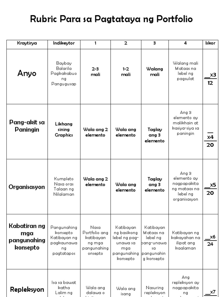 Rubric Para Sa Pagtataya Ng Portfolio Pdf