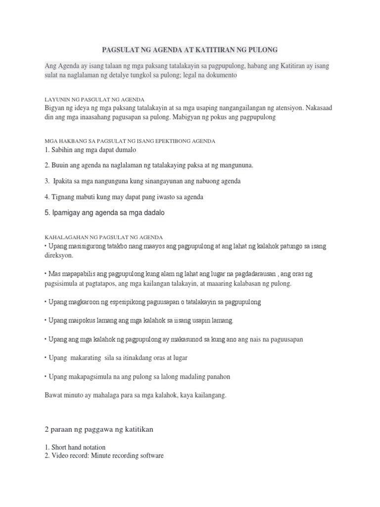 Pagsulat Ng Agenda At Katitiran Ng Pulong Pdf