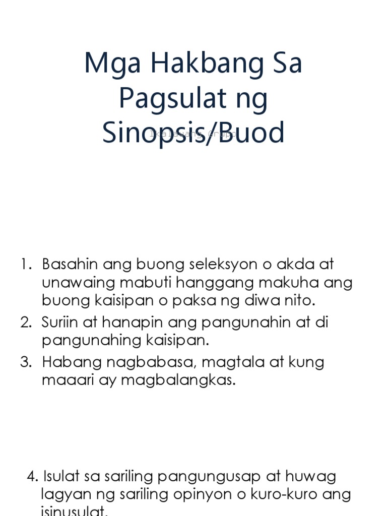 Mga Hakbang Sa Pagsulat Ng Sinopsis Pdf