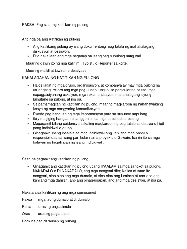 Pag Sulat Ng Katitikan Ng Pulong Pdf