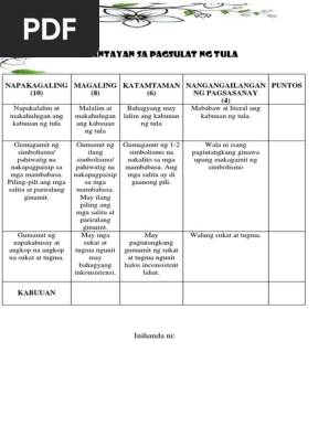 Rubrics Sa Pagsulat Ng Tulaa Pdf